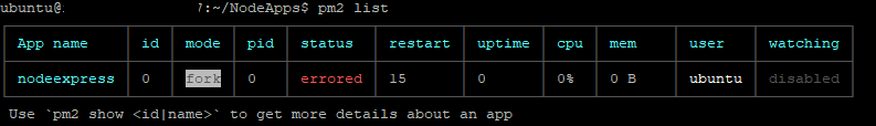 2)应该列出正在运行的应用程序,您可以为每个应用程序找到一个online或errored状态