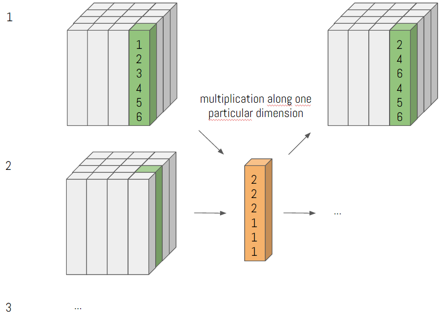 我正在寻找一种优雅的方法,使两个数组沿着一个特定的维度相乘。