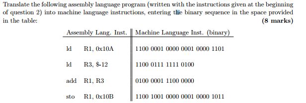 假设未使用的位设置为零,则add R1,R3应该看起来像010000011000000。添加的0x10op代码为010000,寄存器R1为01,寄存器R3为11。添加指令的第二8位部分中的其余6位未使用并被忽略。