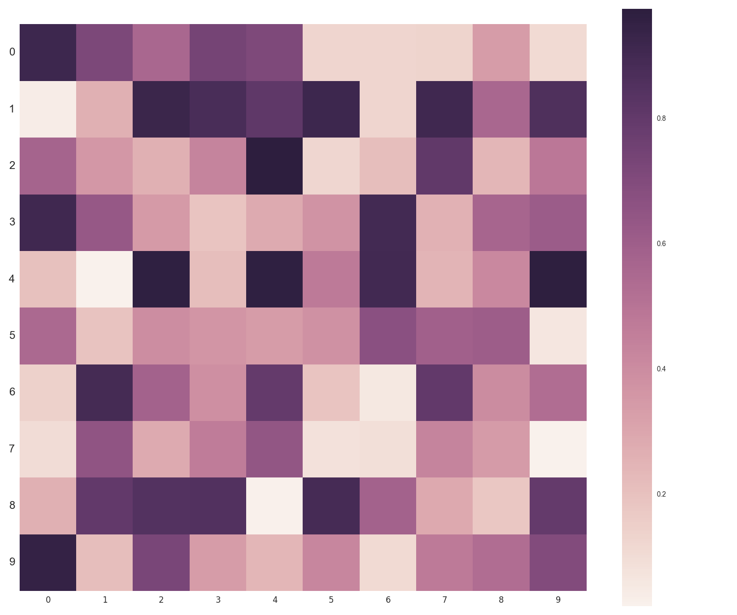 我有一个列表x,它包含0到1之间的强度,我想要创建一个带有平方网格的热图。