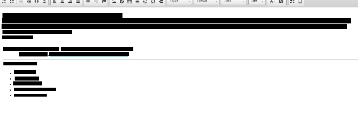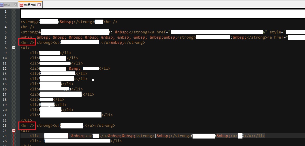 我有一个将html存储在sql表中的应用程序,我需要使用和显示其中的报表。文本占位符被设置为'HTML -将HTML标记解释为样式‘,除了'<'hr /’>标记之外,所有html实际上都得到了很好的解释。