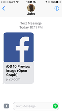 任何iOS10测试版测试人员都知道消息是否使用类似于FacebookOpenGraph的语法来设置像元描述和图像这样的东西?
