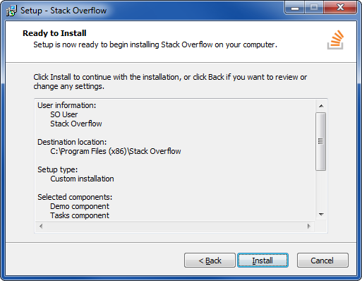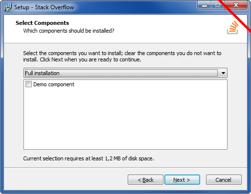 Name: "StackOverflow"; Description: "Demo component"; Types: full