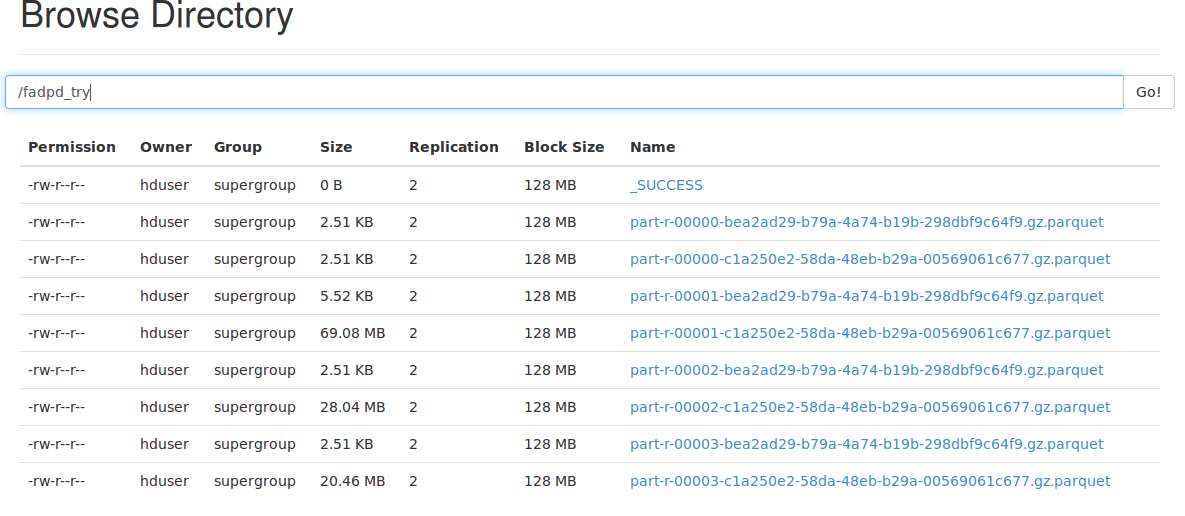 我用的是Apache钻头1.8。为了测试海豚,我用.csv制作了两个拼花文件。CSV的大小约为4GB,gz编解码器为120 4GB,第二部分为250 4GB左右。