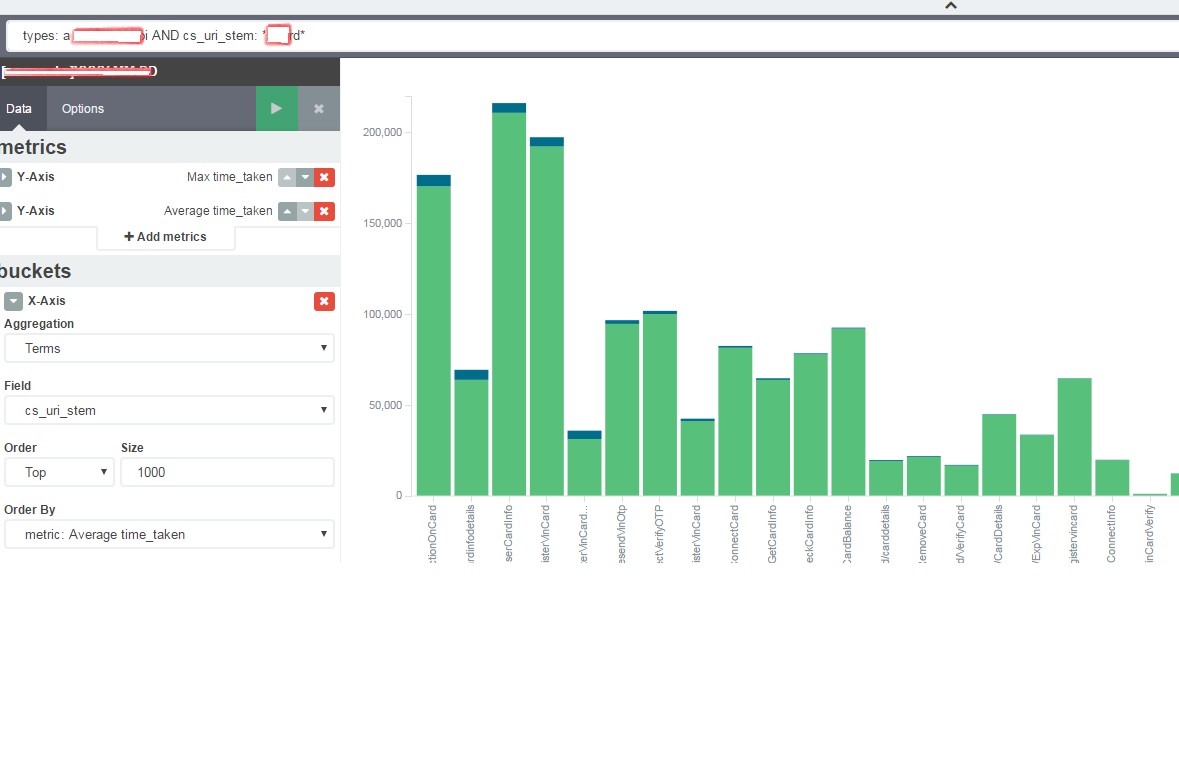我正在使用ELK进行IIS ELK服务器的日志分析。最近的网站是相当慢,我试图过滤哪个网址有最慢的平均time_taken
