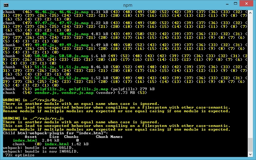 的一个“已知问题”的牺牲品,这就是Windows上性能不佳的问题。据说以管理员的身份运行角cli可以使事情变得更好。 (丑陋的黑客!)webpack