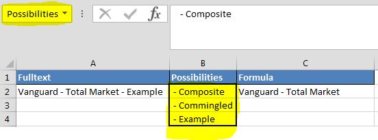 然而,我不知道如何寻找多个术语(即复合或混合)。有什么公式可以做到这一点吗?如果没有,我怎样才能在VBA中做到这一点?