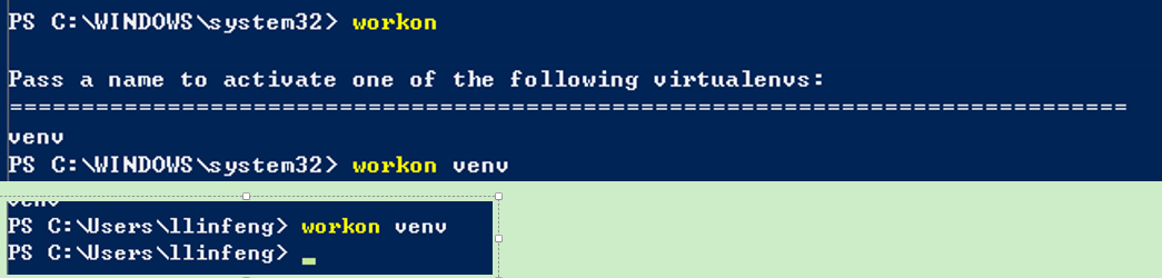 安装到我的PowerShell上。然而,我只能进入一个虚拟环境,我已经创建了它。如果我打开Power的新会话,workon