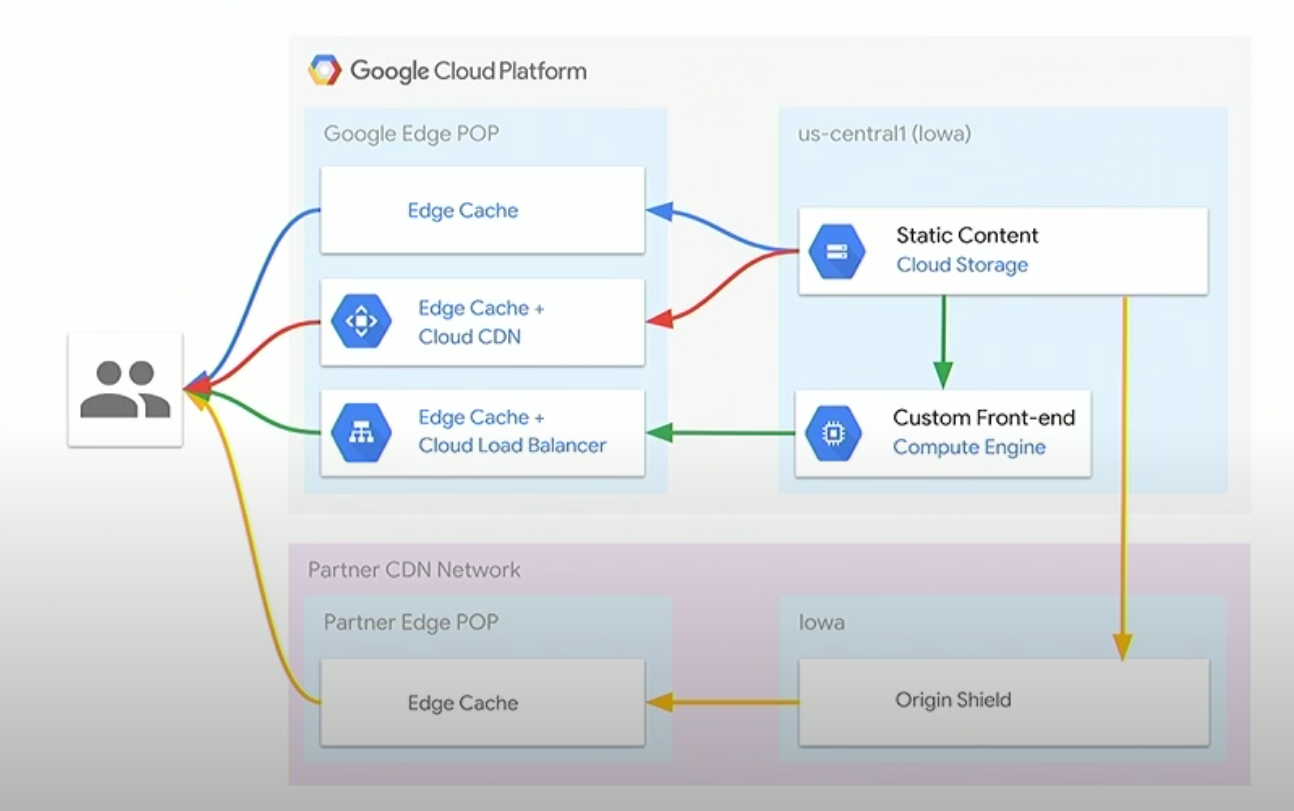 我所见过的关于云存储边缘缓存与云CDN的最佳讨论是在Google '18会话用于存储类、可靠性、性能和可伸缩性的最佳实践期间。整个视频很有用,但下面是内容分发主题的链接。