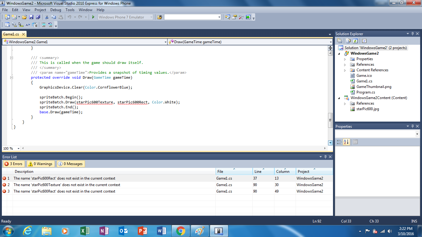 我正在使用本教程介绍如何使用Microsoft游戏工作室通过游戏开发进行编程。我在为项目增加资源的问题上遇到了麻烦。