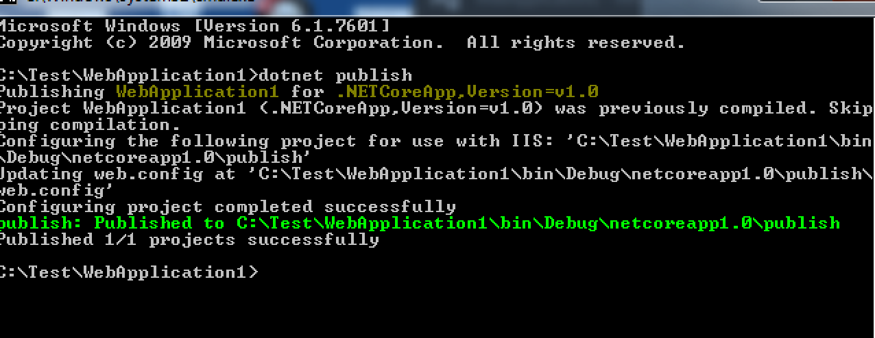 Configuring the following project for use with IIS: 'C:\Users\dco\Documents\Workspace\Sandbox\Test\bin\Debug\netcoreapp1.0\publish'