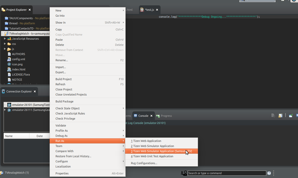 运行As > Tizen Web模拟器应用程序(三星电视)