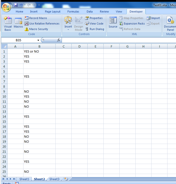 ThisWorkbook.Worksheets("Sheet1").Range("B2").Value = Application.WorksheetFunction.CountIf(oWS.Range("B:B"), "YES")