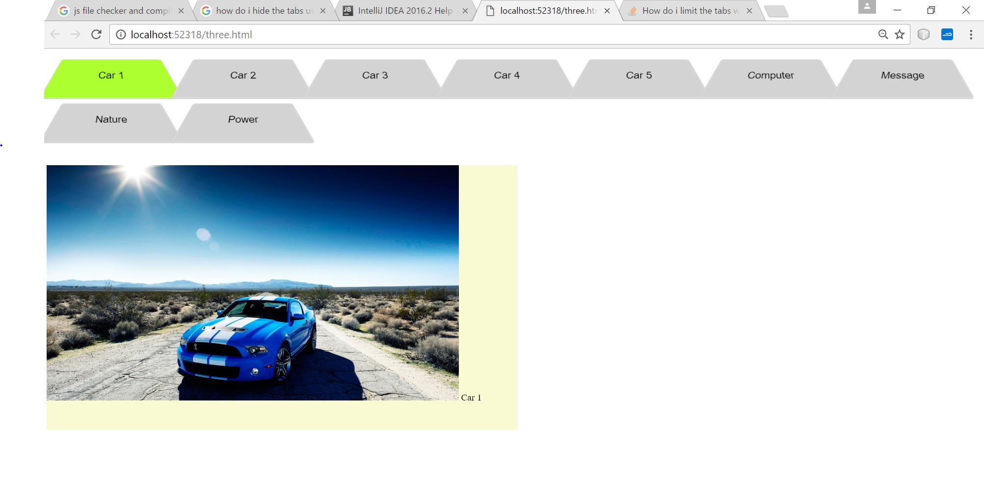 <button data-tab="tab-1" class="button current">Car 1</button>