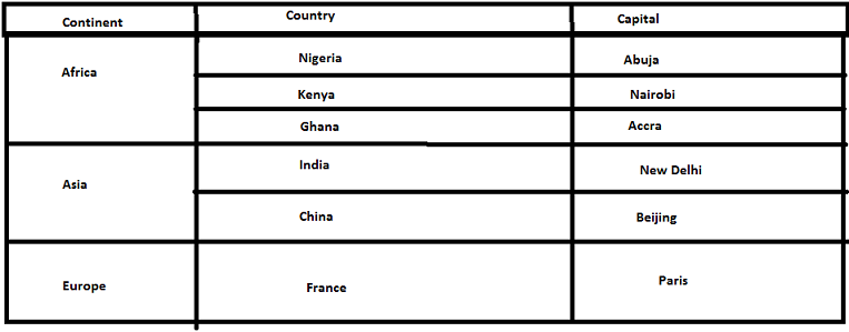 </table>这为每个大陆创造了一个tbody,为每个国家创造了一个tr。只有大陆的第一行才能得到该大陆名称的单元格。该单元格还会获得一个rowspan属性,以便它跨越多个行。
