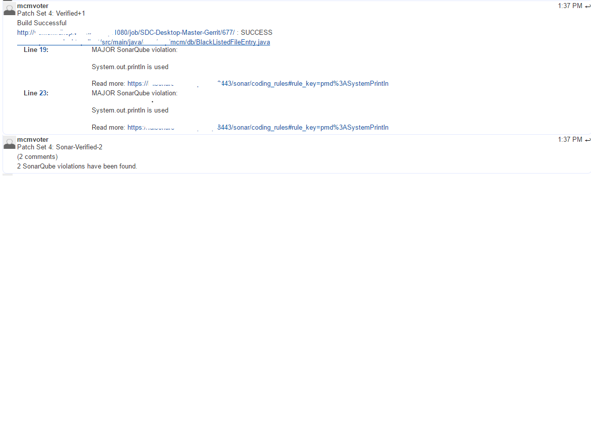 我已经集成了Sonar插件来发布声纳报告,作为评论在gerrit中。张贴声纳评论是配置在gerrit构建的后构建动作下张贴-经过验证的category.Verified评分是由gerrit构建的成功/失败张贴。