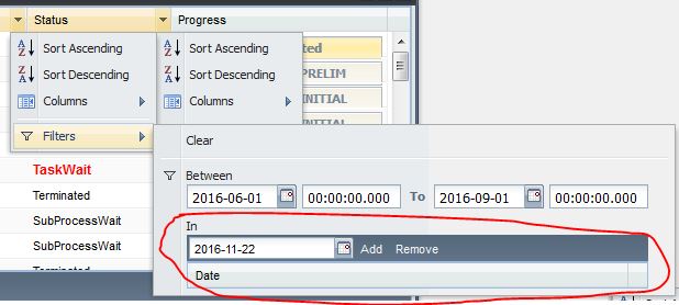 我试图将一行添加到GXT网格中,但不幸地失败了。我正在尝试构建一个网格,它可以用作一个IN过滤器。它有一个DateField和两个添加和删除按钮。ADD应该从date字段获取日期,并将其添加到网格中。移除应从网格中移除选定的项。