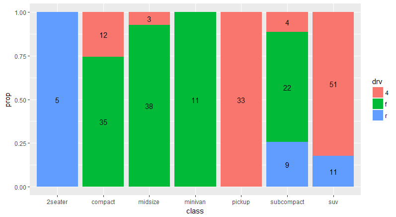 g + geom_col(aes(fill = drv), position = 'fill') +