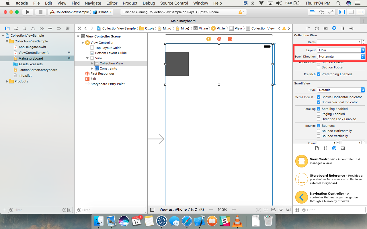 flowLayout.scrollDirection = UICollectionViewScrollDirectionHorizontal;