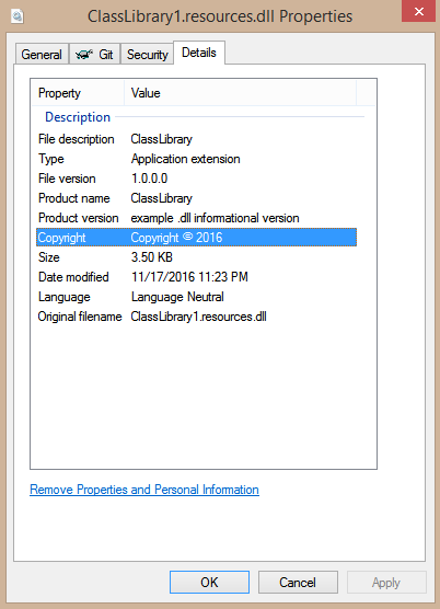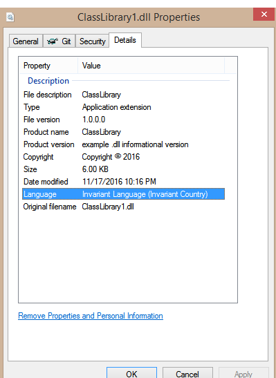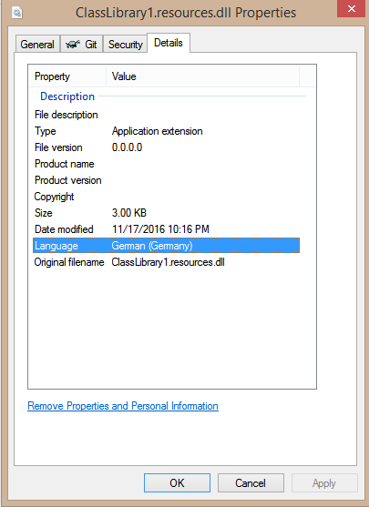 当右键单击MSBuild或.dll并查看details选项卡查看language属性时,.exe和.dll输出之间似乎存在差异。如果你有一个卫星组件,还有另外一个不同之处。