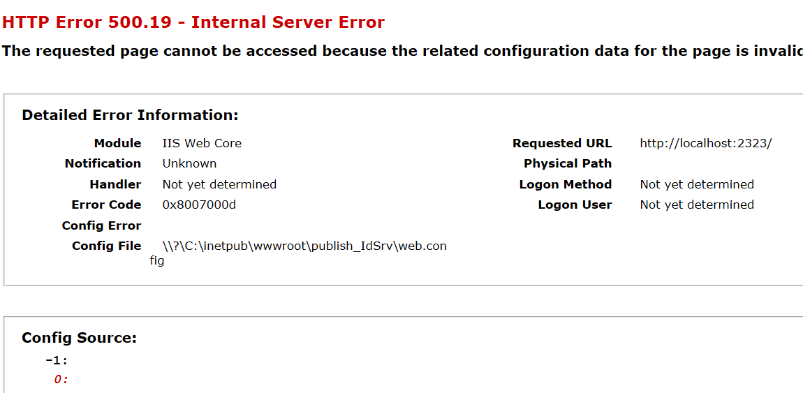 但是,当我在另一个PC上(使用相同版本)将其部署到IIS上时,它会给出HTTP 500.19