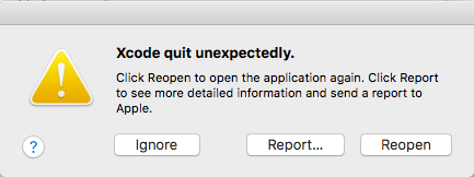 我已经安装了Xcode7.3和Xcode 8.1,而且我有一个较旧的Xcode 7.3项目。我在Xcode 8.1中运行这个项目很好。但是,当我试图在Xcode 7.3中运行时,当我试图点击/单击general或者其他命令时,它就会崩溃。