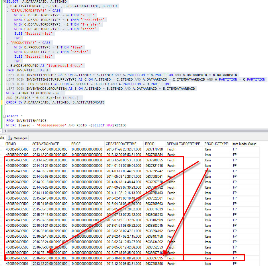LEFT JOIN INVENTITEMPRICE AS B ON A.ITEMID = B.ITEMID AND A.PARTITION = B.PARTITION AND A.DATAAREAID = B.DATAAREAID