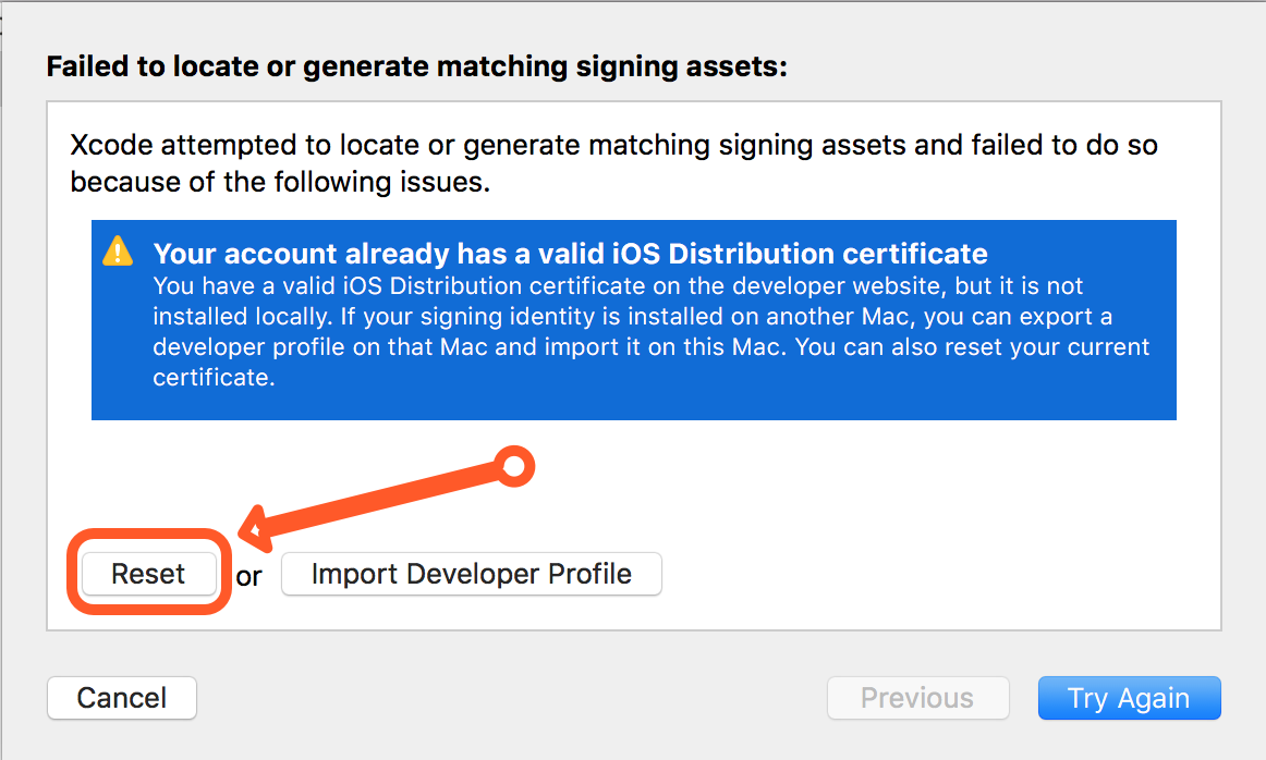 未能找到或生成匹配的签名资产。您的帐户已经具有有效的iOS分发证书。