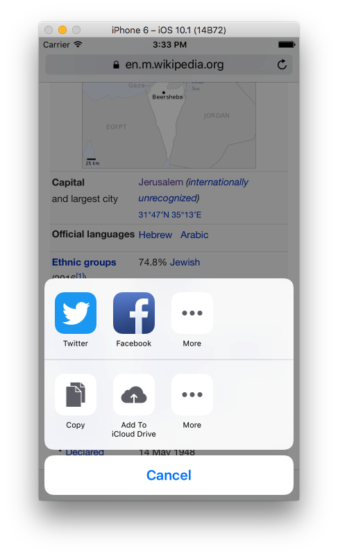 然后打开一个共享面板,我的应用图标就在那里。但是,如果我将Safari中的一个链接按住几秒钟,然后弹出以下警报