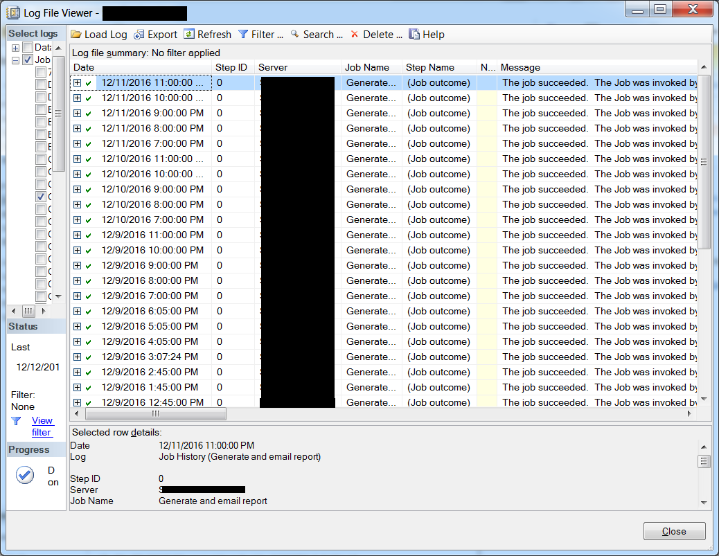 这是历史和工作计划的截图。历史表明,它每小时成功运行,直到12/11晚上11点。