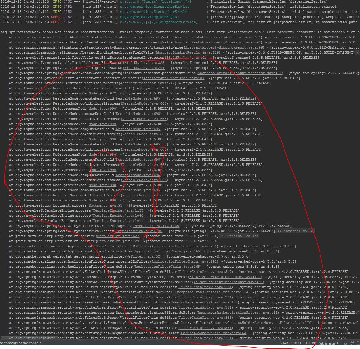 好吧,当您使用Spring + Thymeleaf时,这就是堆栈的样子,您不能真正改变它。但是,可以尝试不通过以下两种方法将其打印到控制台/日志文件中: