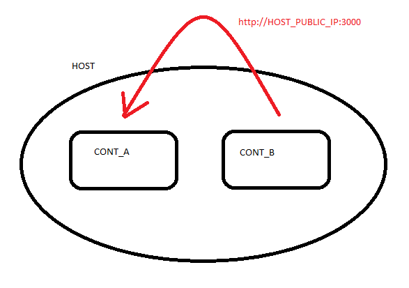 这是我的装置。我有我的开发机器。我有一台有两个集装箱的码头主机。CONT_A在端口3000上监听和发布web服务。