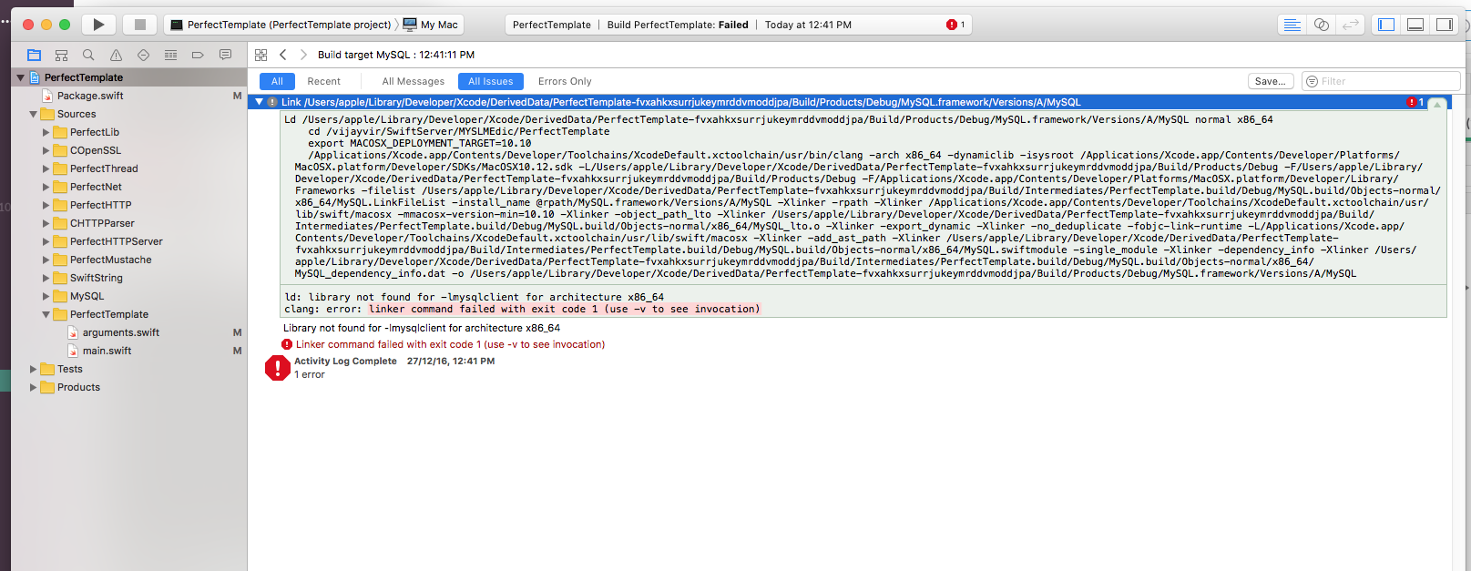 请使用完美助手构建您的项目http://perfect.org/en/assistant/或仔细阅读完美的MySQL文档。