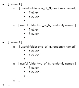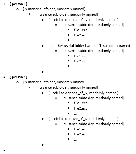 我有一个数据集,由按照以下分层文件夹/子文件夹结构组织的文件组成: