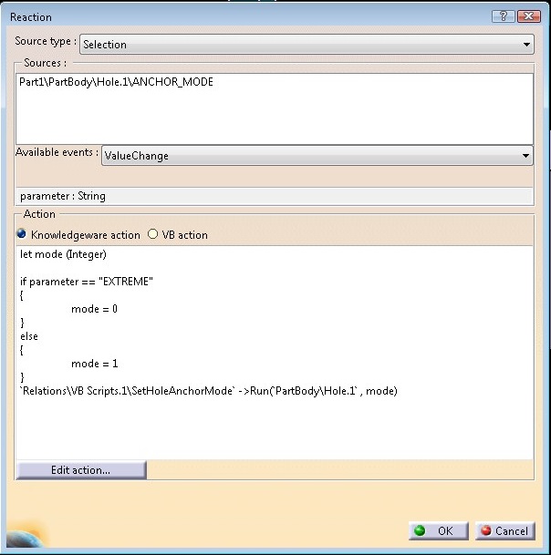 一旦你有了它,你就可以使用一个链接到一个参数的反应来控制这个洞的属性。在本例中,我使用参数资源管理器工具在漏洞上创建属性,并将这些属性用于reaction触发器。