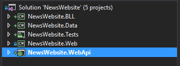例如,我开始写新闻网站。我将我的项目分层: