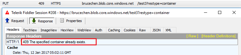 PUT请求由container.CreateIfNotExists()触发,当容器已经存在时,该请求将按预期失败。整个代码路径工作正常,我认为您不需要担心任何事情。
