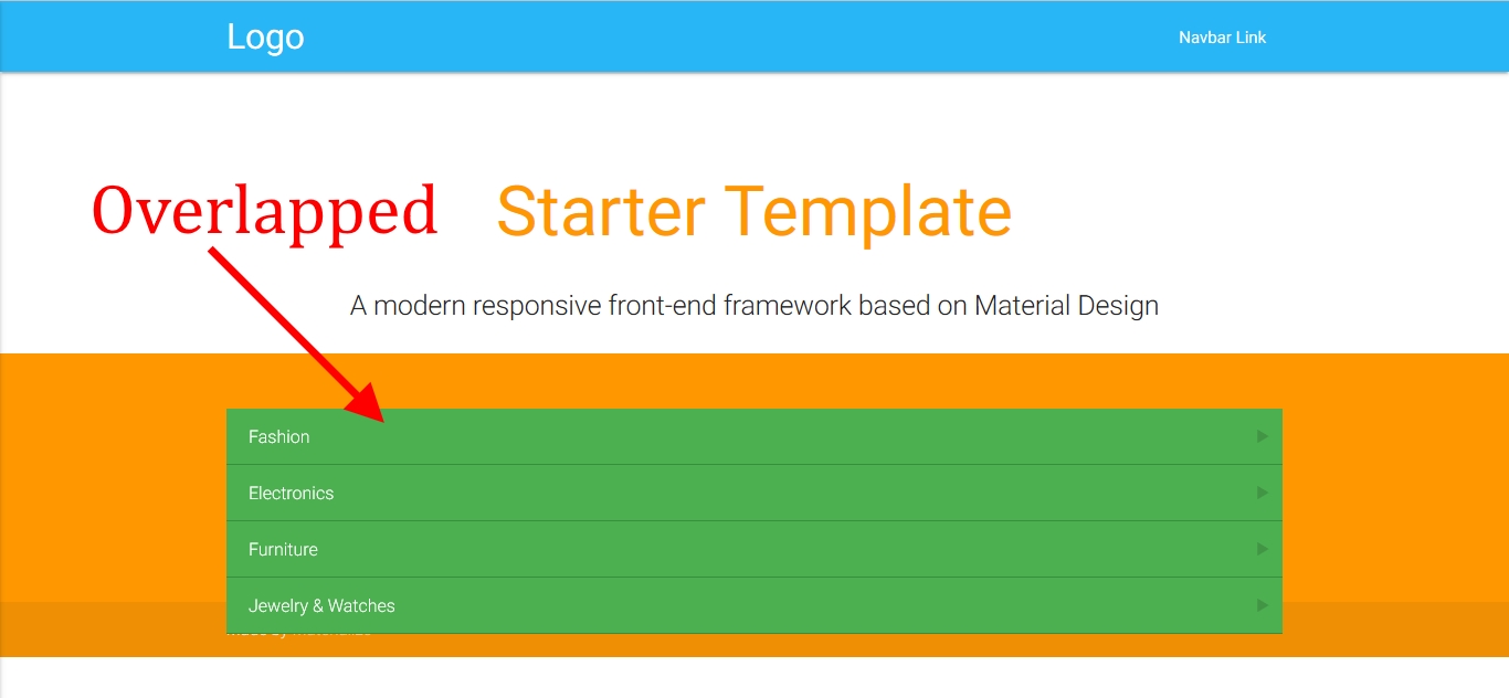基本上,我采用了物化入门模板,删除了一些div,并添加了多级菜单代码。它看起来很可怕,重叠,不合适。