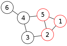 图有一个最大团,三角形{1,2,5}和另外四个最大团,对{2,3},{3,4},{4,5},和{4,6}。