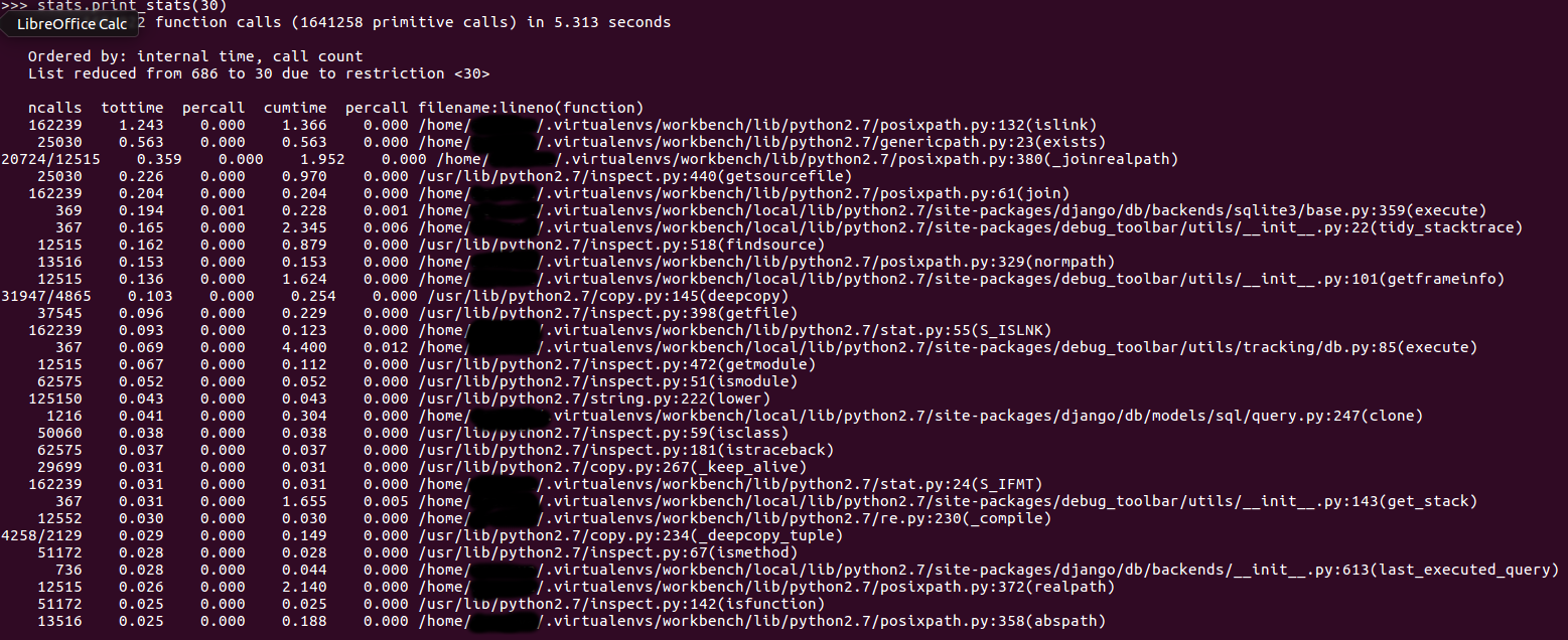 of django-扩展,发现导致延迟的不是数据库,而是对核心python方法的过度调用。查看前30个时间密集型电话。