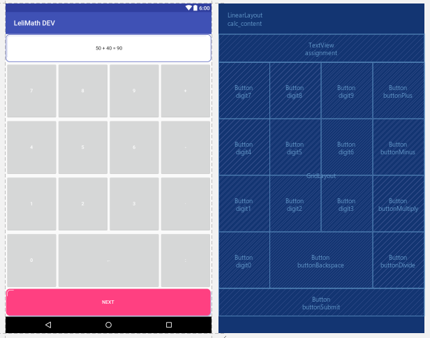 D/android.support.v7.widget.GridLayout: vertical constraints: y1-y0>=197, y2-y1>=197, y3-y2>=197, y4-y3>=197, y4-y0<=785 are inconsistent; permanently removing: y4-y0<=785. calc.xml:
