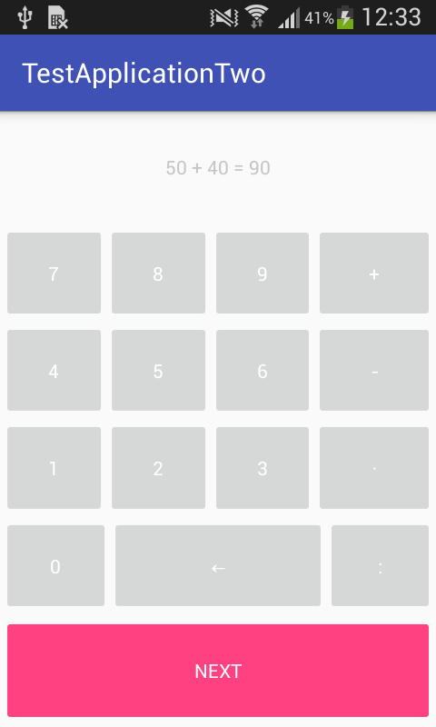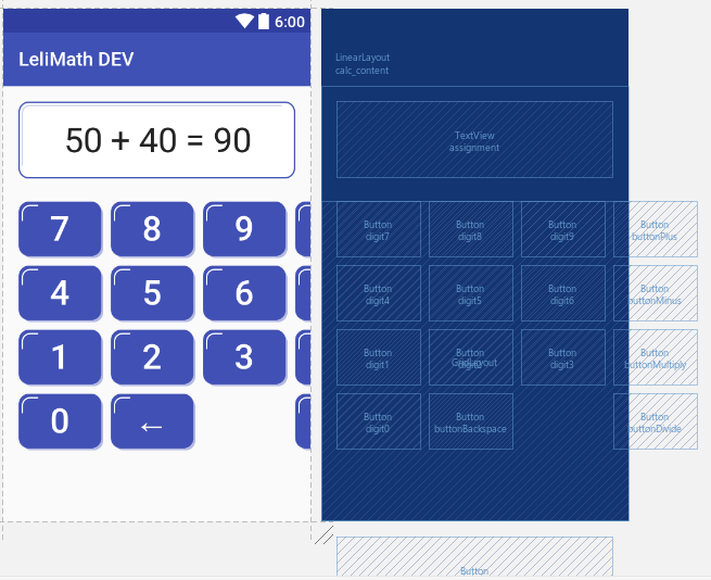 我试着缩小字体大小,删除9补丁背景,甚至删除所有边距。当有一些利润的时候,我可以看到只有digit7。然后我将它们最小化,我可以看到四行,它们的第一个按钮被渲染成显示器的两倍大。我不明白为什么,它应该有wrap_content宽度。