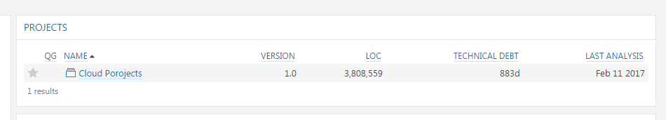 我已经在Sonar中集成了这一点,我只有一个项目作为云项目,如下所示,当显示所有组合的项目源代码时。