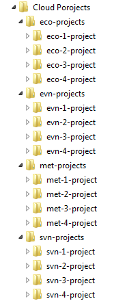 Cloud 文件夹有四种类型的项目(生态项目、evn-项目、met projects、svn-projects)。