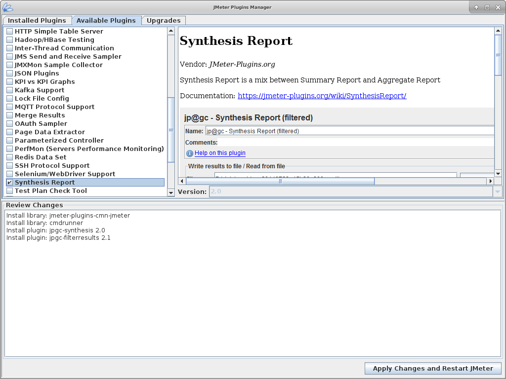 Caused by: java.lang.ClassNotFoundException: kg.apc.jmeter.vizualizers.SynthesisReportGui