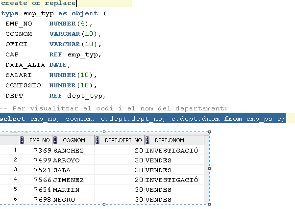 知道表emp_ps是emp_typ表,我不明白图片中的句子是如何正确的。不应该是无法通过".“到达的ref字段。接线员?我想我必须把"e.dept“的价值演绎成一个emp_typ的变体,然后,只有这样,我才能在aux的字段中导航!