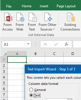 当您将数据导入到Excel中时,请告诉导入向导该字段是文本。
