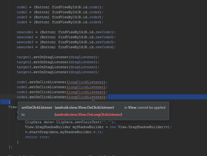 code2.setOnLongClickListener(longClickListener);有关它的详细信息,在文档中