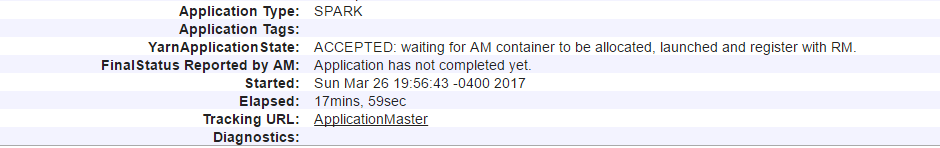 17/03/26 19:54:46 INFO yarn.Client: Application report for application_1490572543329_0001 (state: ACCEPTED)