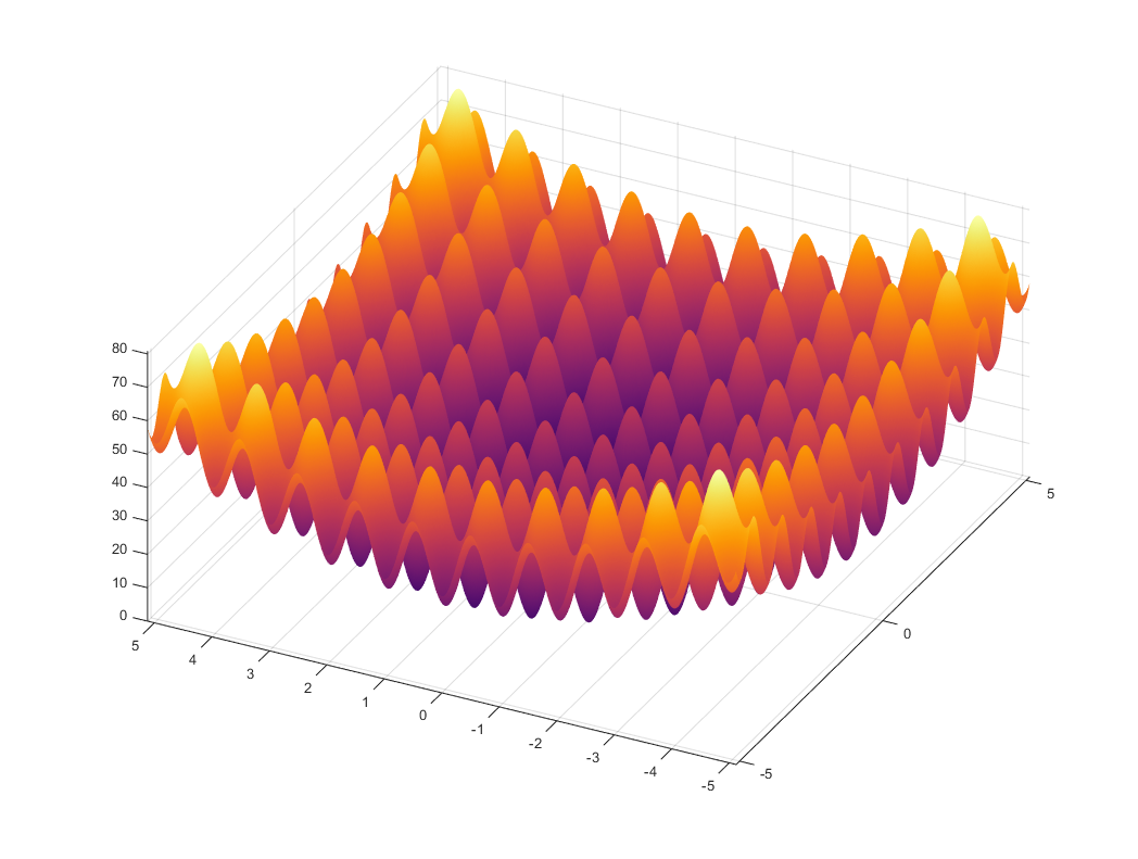 f =20+x1.^2+x2.^2-10*(cos(2*pi*x1)+cos(2*pi*x2));